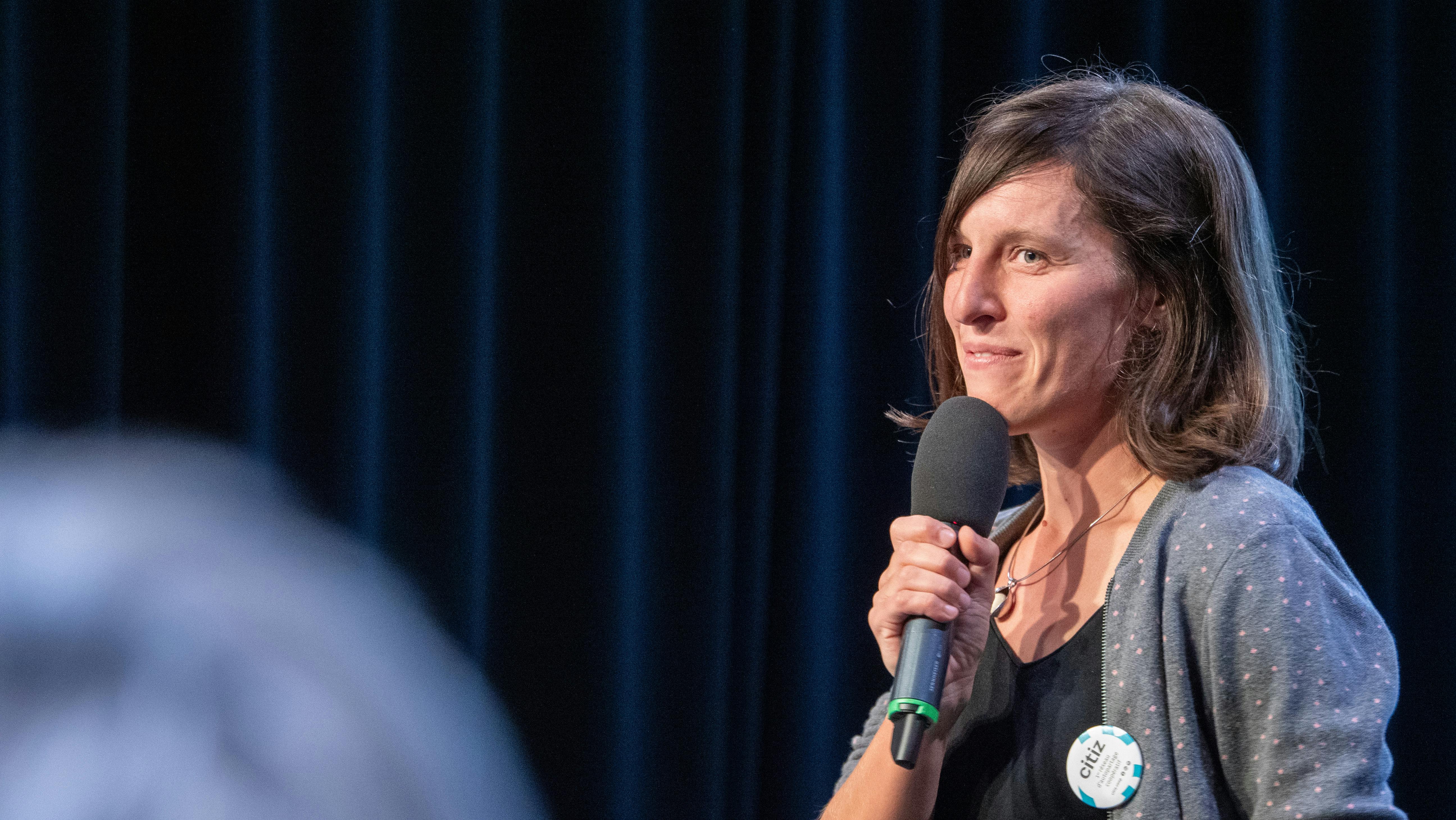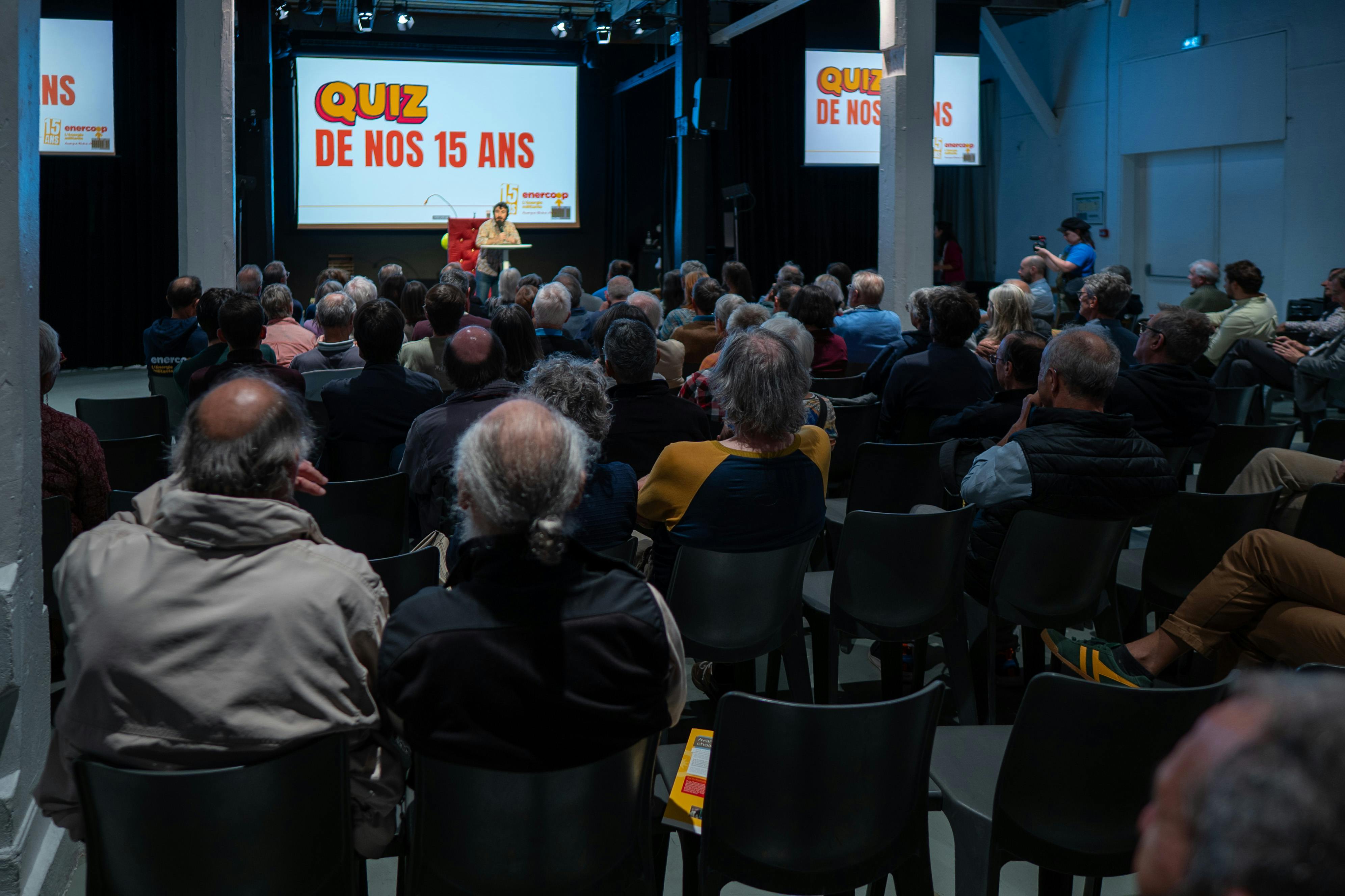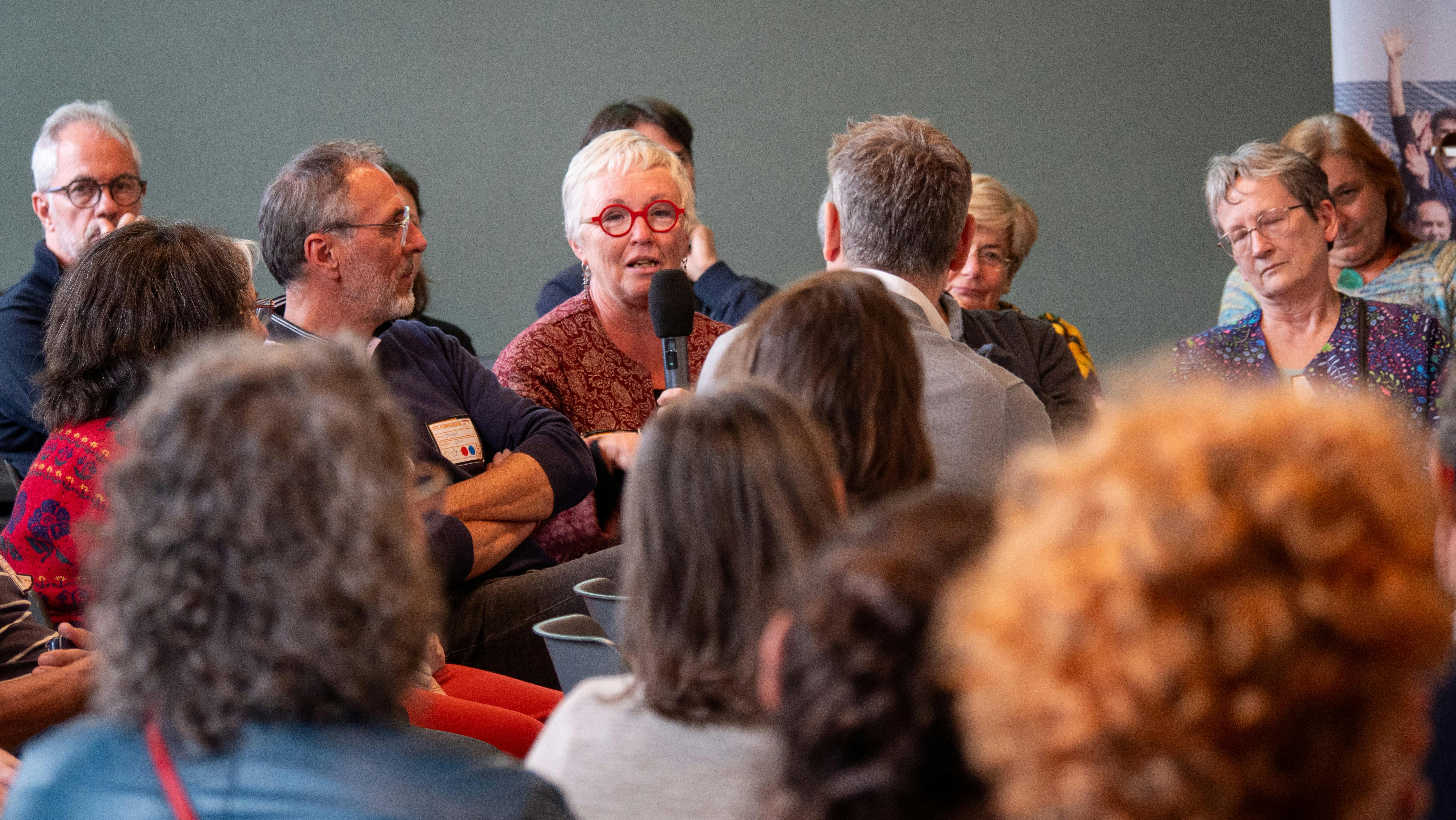 Puis Julien Courtel a pris la main sur l’animation grâce à ses talents de théâtre. Un quizz rebondissant et drôle a savamment permis d’accueillir les témoignages d’Alain Descols pour la SCIC Com’Toit, Thierry Gilbert pour AURANCE ENERGIES, Danielle et Alain Keller des sociétaires engagé·es, Cédric Perly pour parler de notre gouvernance partagée dans l'équipe salariée, Catherine Tournier pour Satoriz, Agnès Quesne pour Grenoble-Alpes Métropole, François Devers pour ForestEner et Solène Bereziat pour Citiz, membre de chez Les Licoornes.