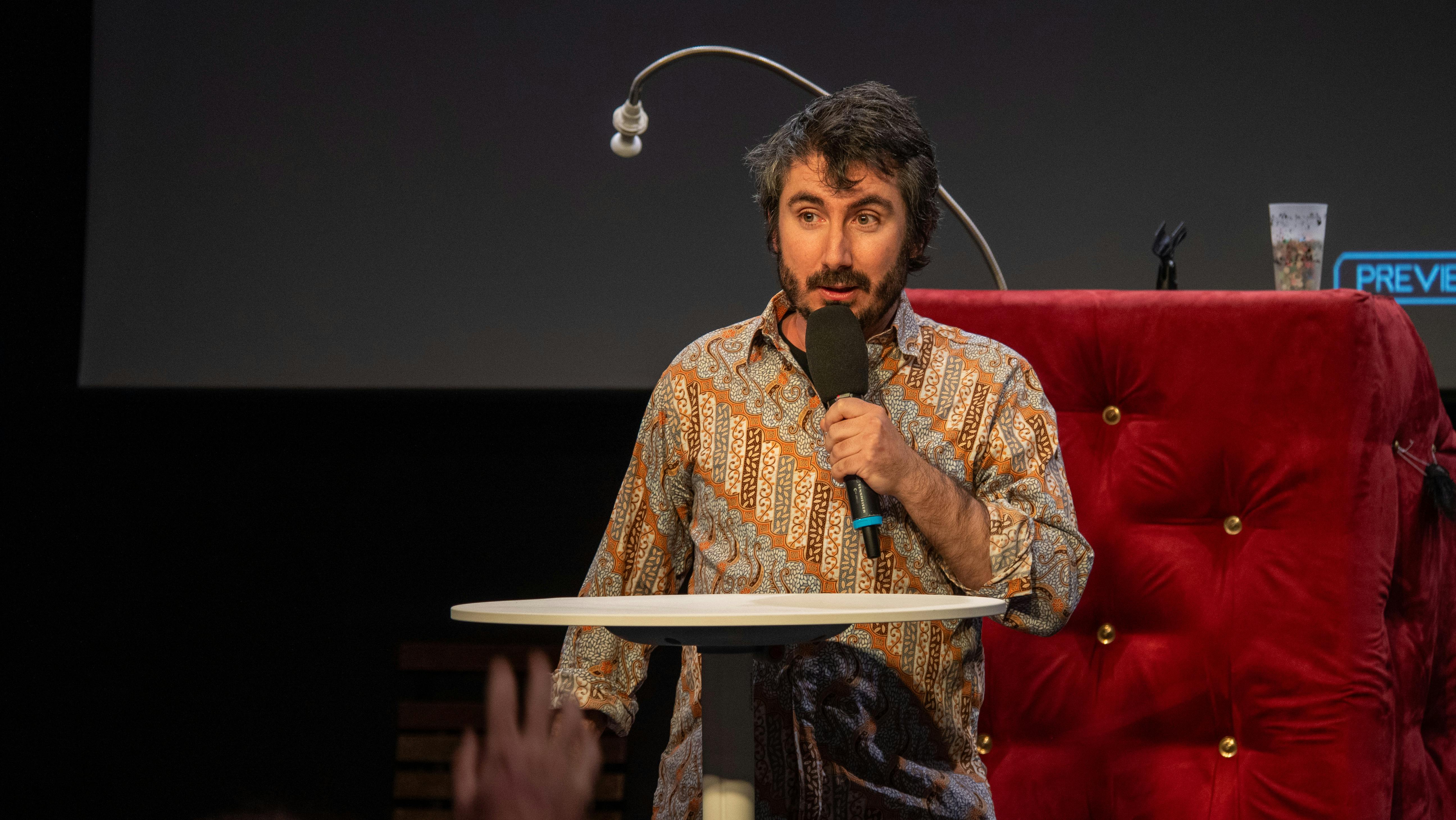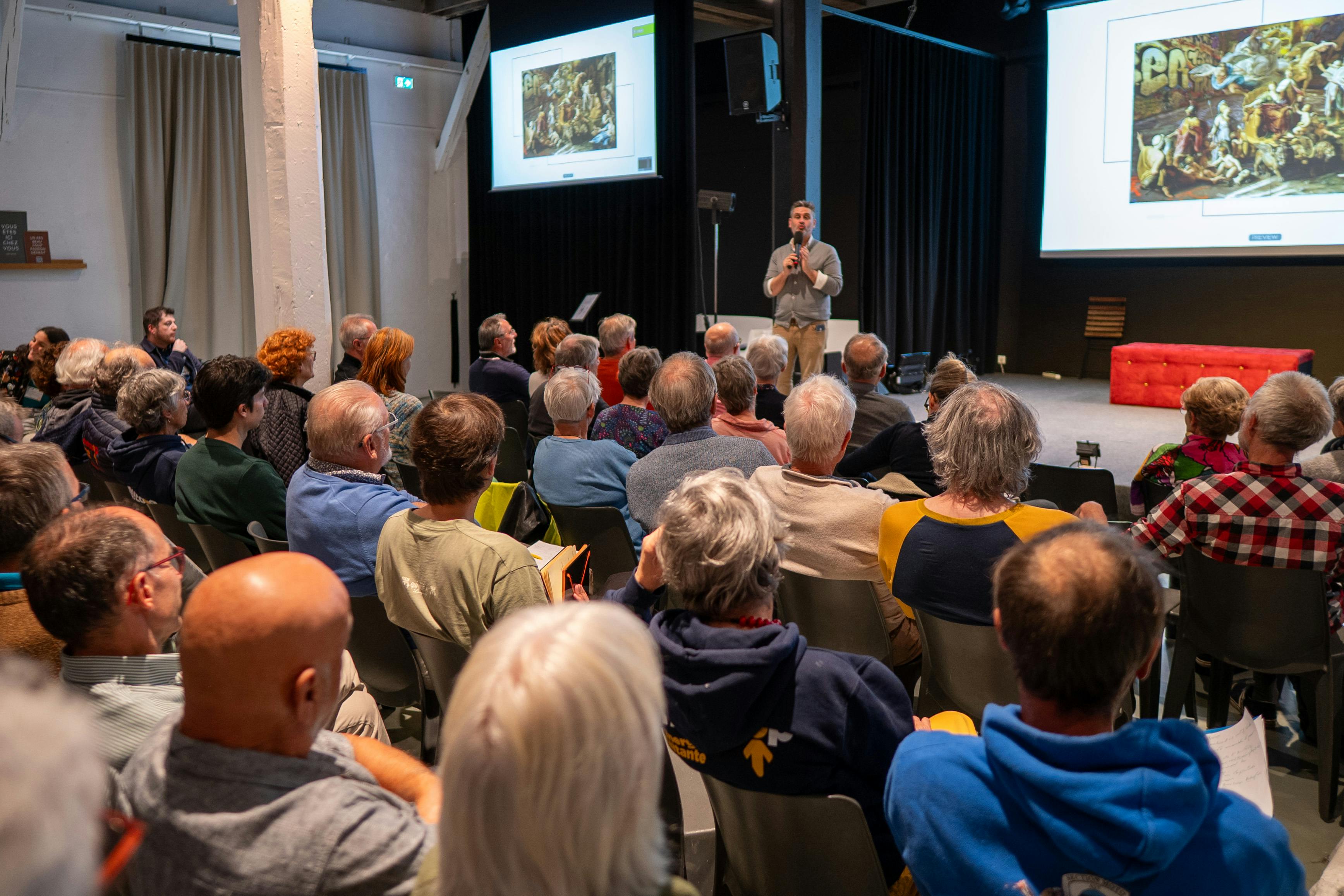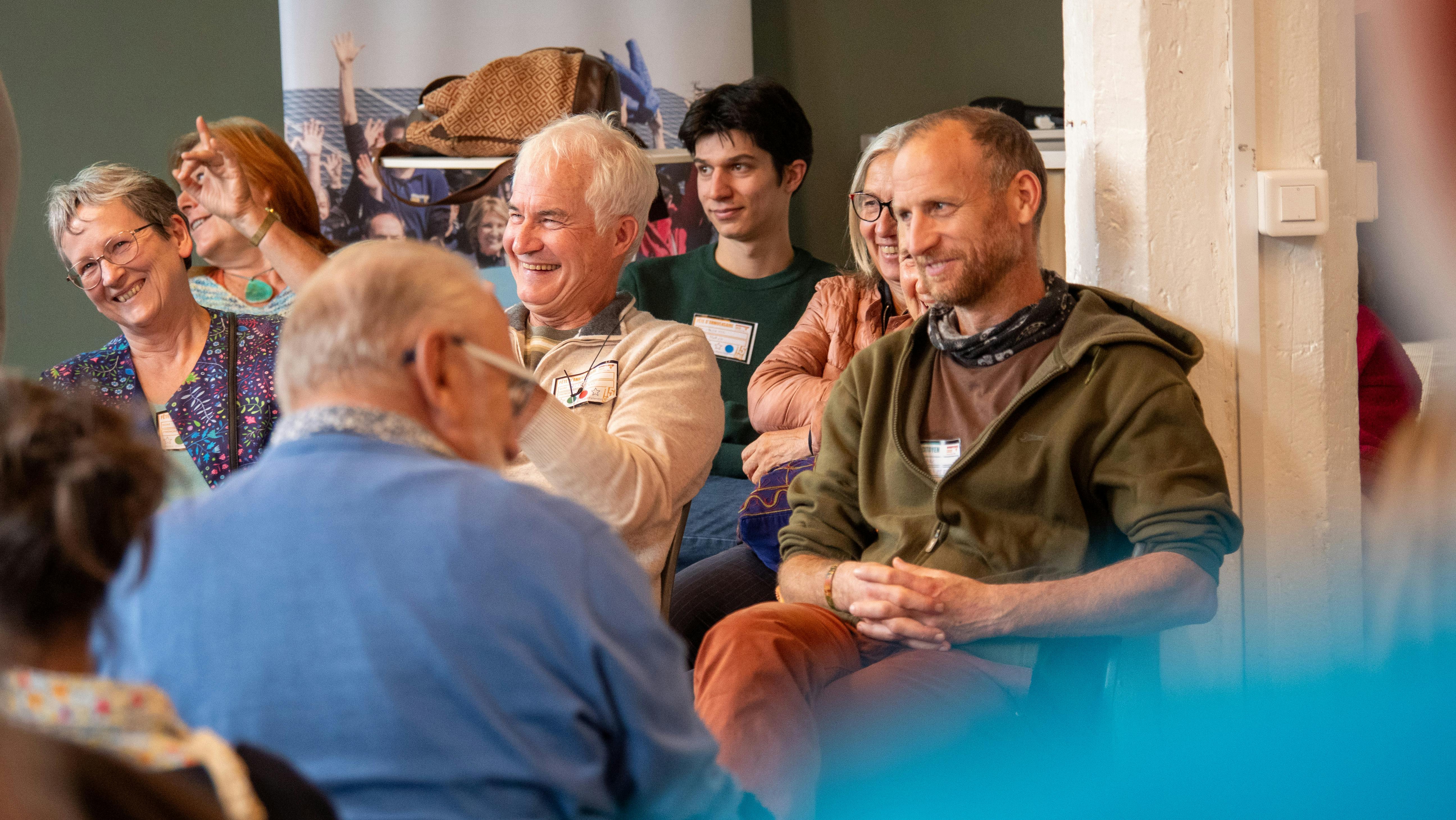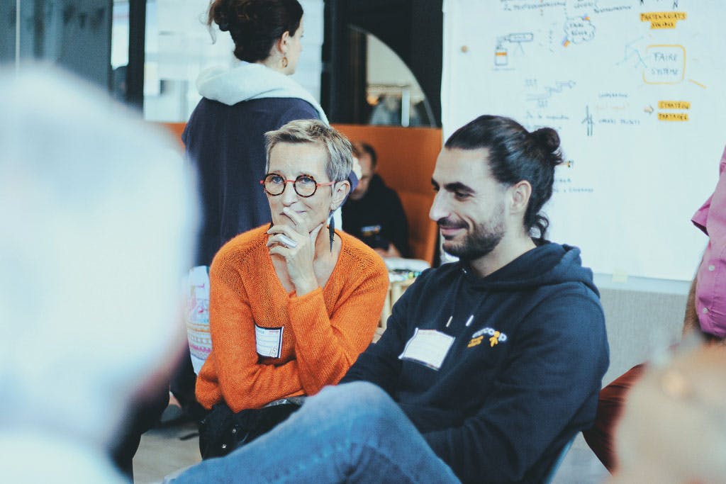 Puis Julien Courtel a pris la main sur l’animation grâce à ses talents de théâtre. Un quizz rebondissant et drôle a savamment permis d’accueillir les témoignages d’Alain Descols pour la SCIC Com’Toit, Thierry Gilbert pour AURANCE ENERGIES, Danielle et Alain Keller des sociétaires engagé·es, Cédric Perly pour parler de notre gouvernance partagée dans l'équipe salariée, Catherine Tournier pour Satoriz, Agnès Quesne pour Grenoble-Alpes Métropole, François Devers pour ForestEner et Solène Bereziat pour Citiz, membre de chez Les Licoornes.