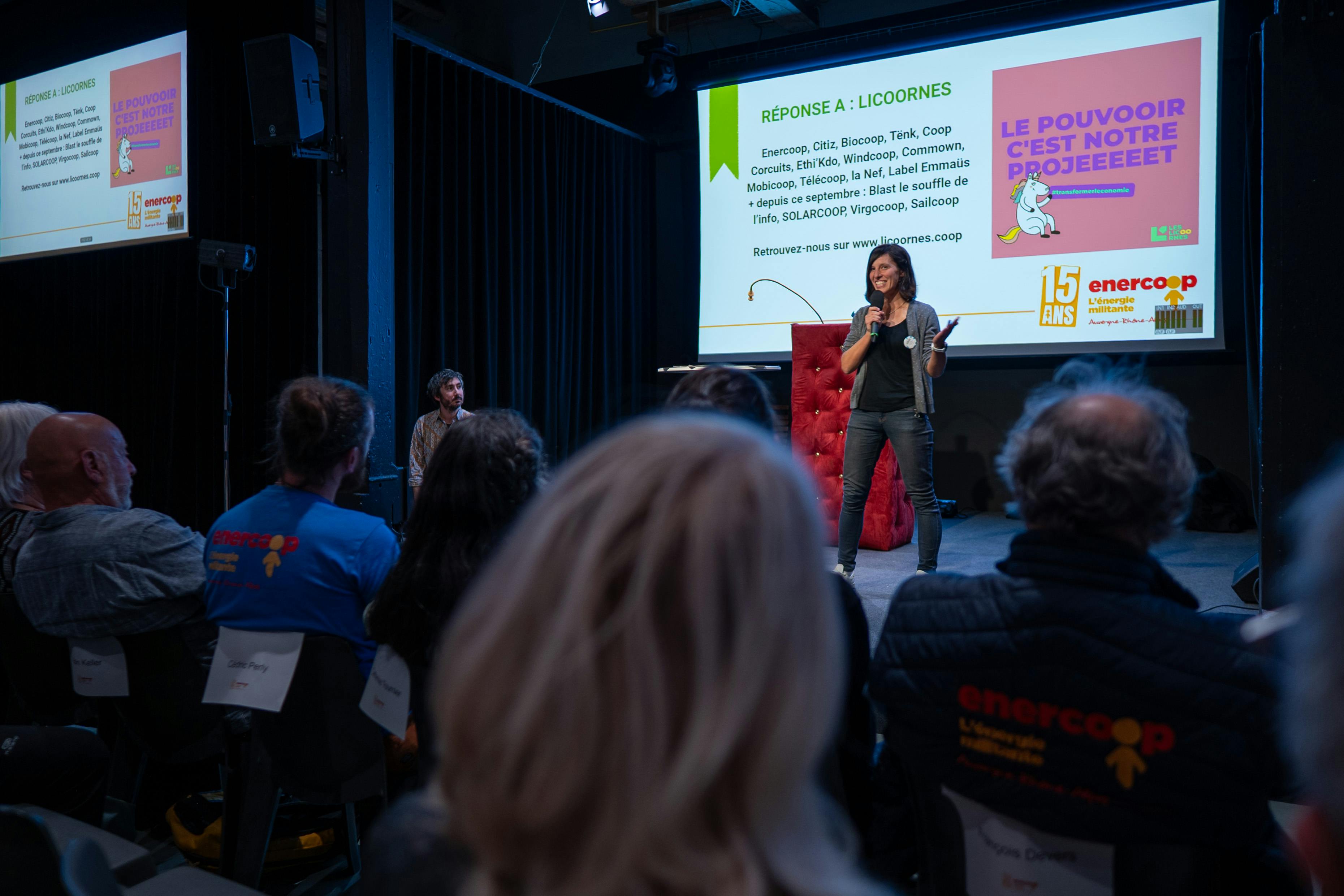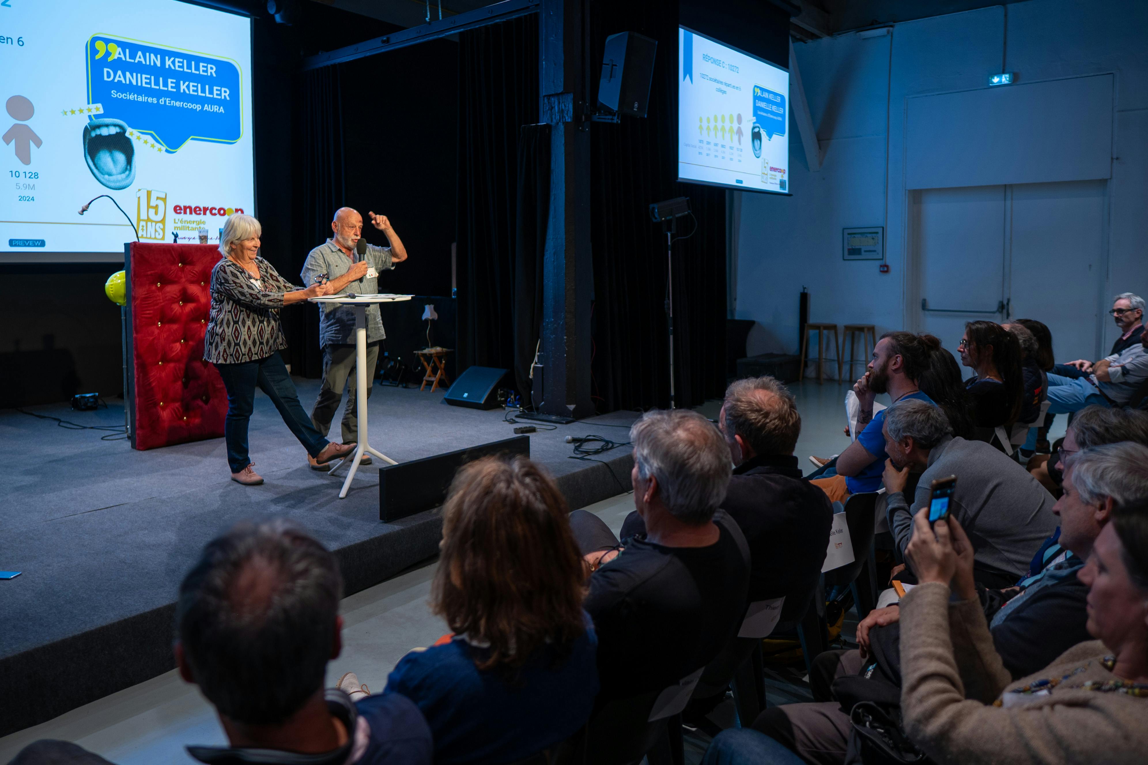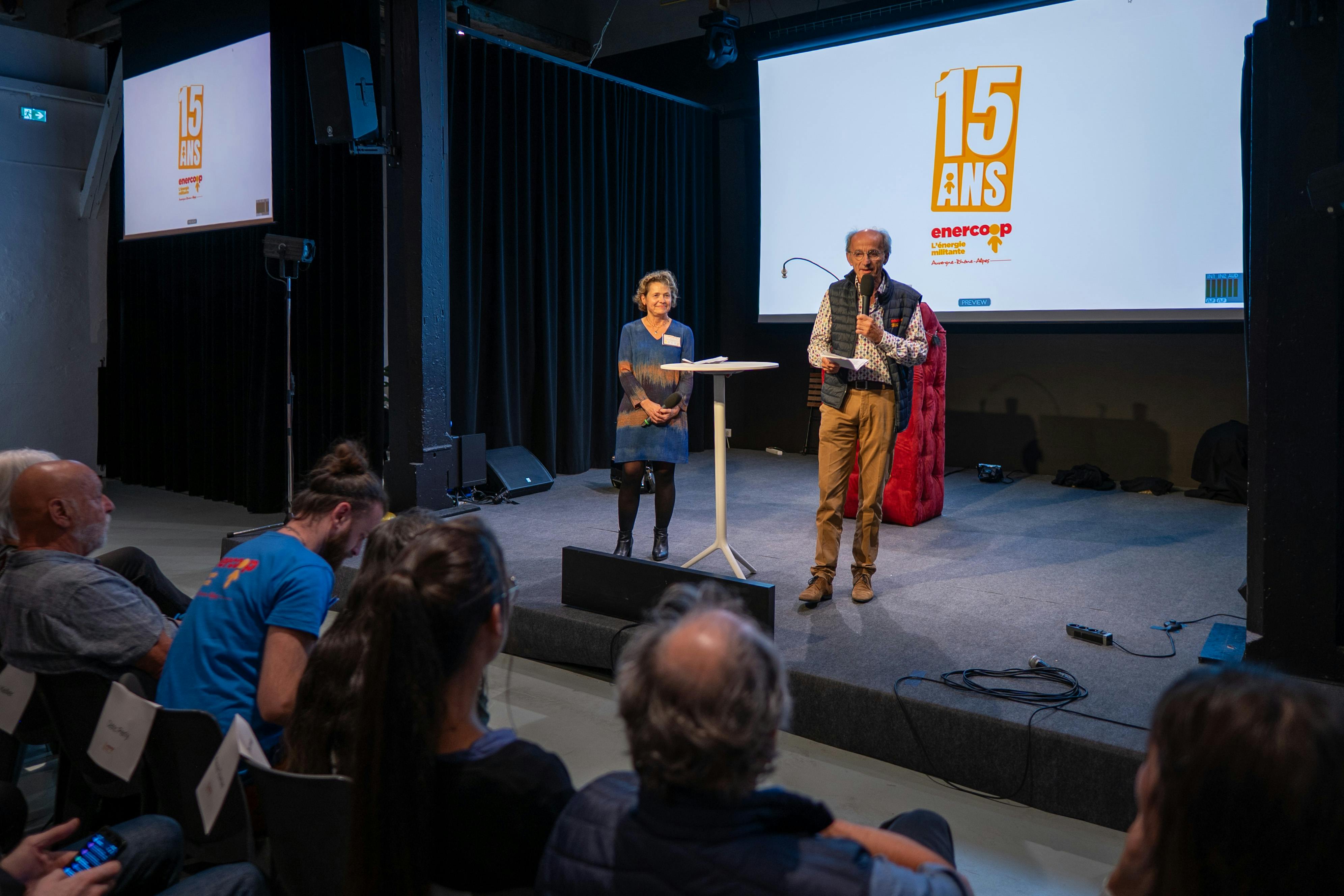 Le temps fort de notre anniversaire s’est ouvert en double voix avec notre Président Vincent Jacques-le-Seigneur et la Directrice Générale d’Enercoop National Catherine El Arouni. Chacun·e depuis sa vision et son expérience d’Enercoop AURA a conté notre histoire et ses liens si particuliers avec notre coopérative régionale.