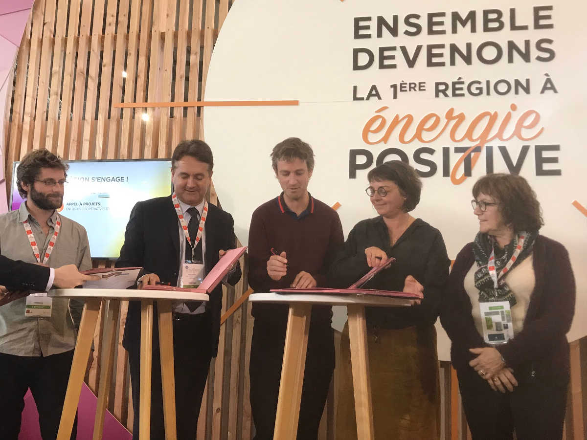 C'est le 11 décembre 2018 à Energaïa, forum des énergies renouvelables, que la Région Occitanie, à travers son Agence Régionale de l’Energie et du Climat, a signé l'accord partenarial avec les sociétés coopératives d’intérêt collectif Enercoop Languedoc-Roussillon et Enercoop Midi-Pyrénées. Cet accord de coopération est organisé autour d’axes majeurs pour la réussite de la transition énergétique : communication, sensibilisation et formation, accompagnement des projets de production d’énergies renouvelable, et développement des capacités de production et d’innovation.
