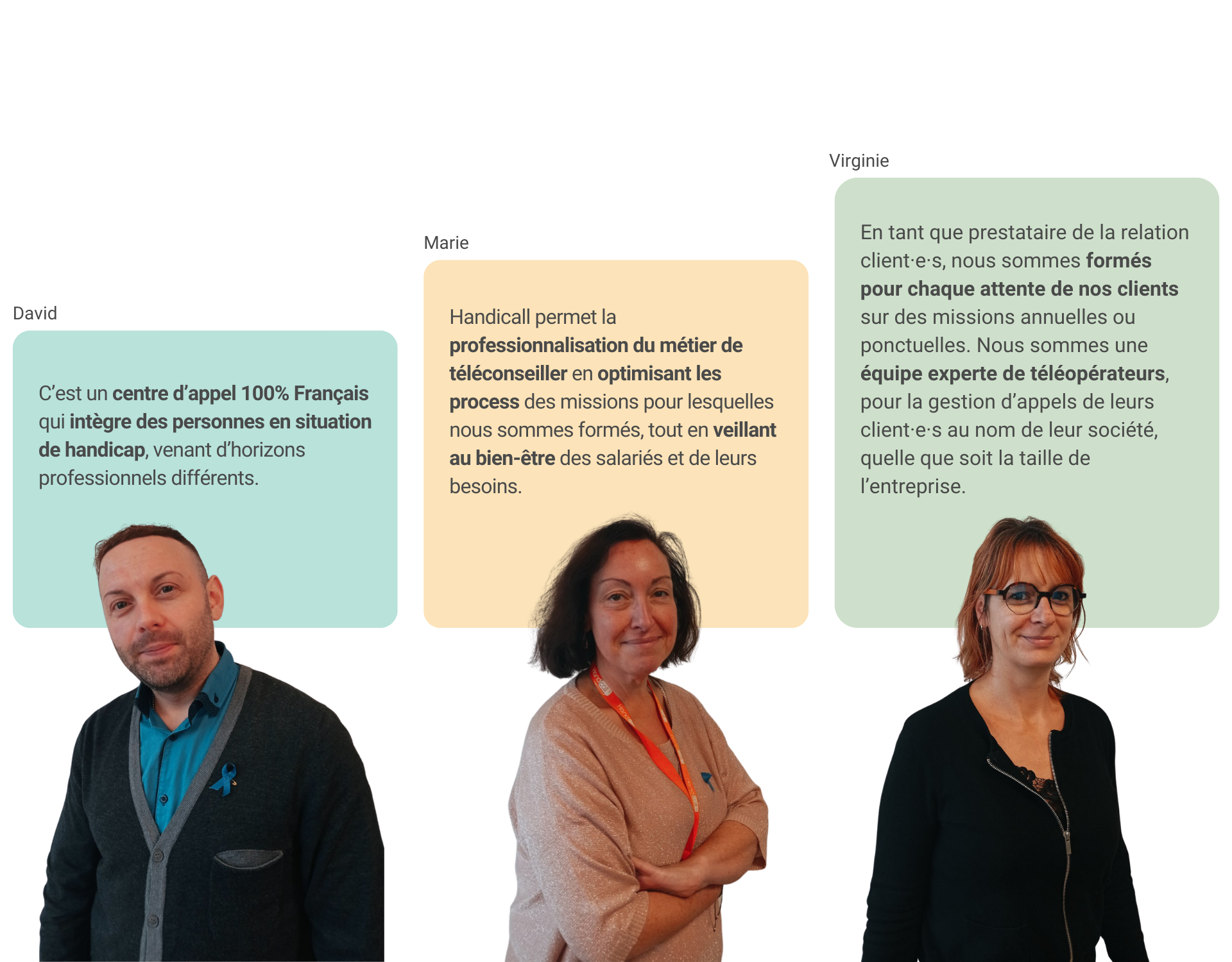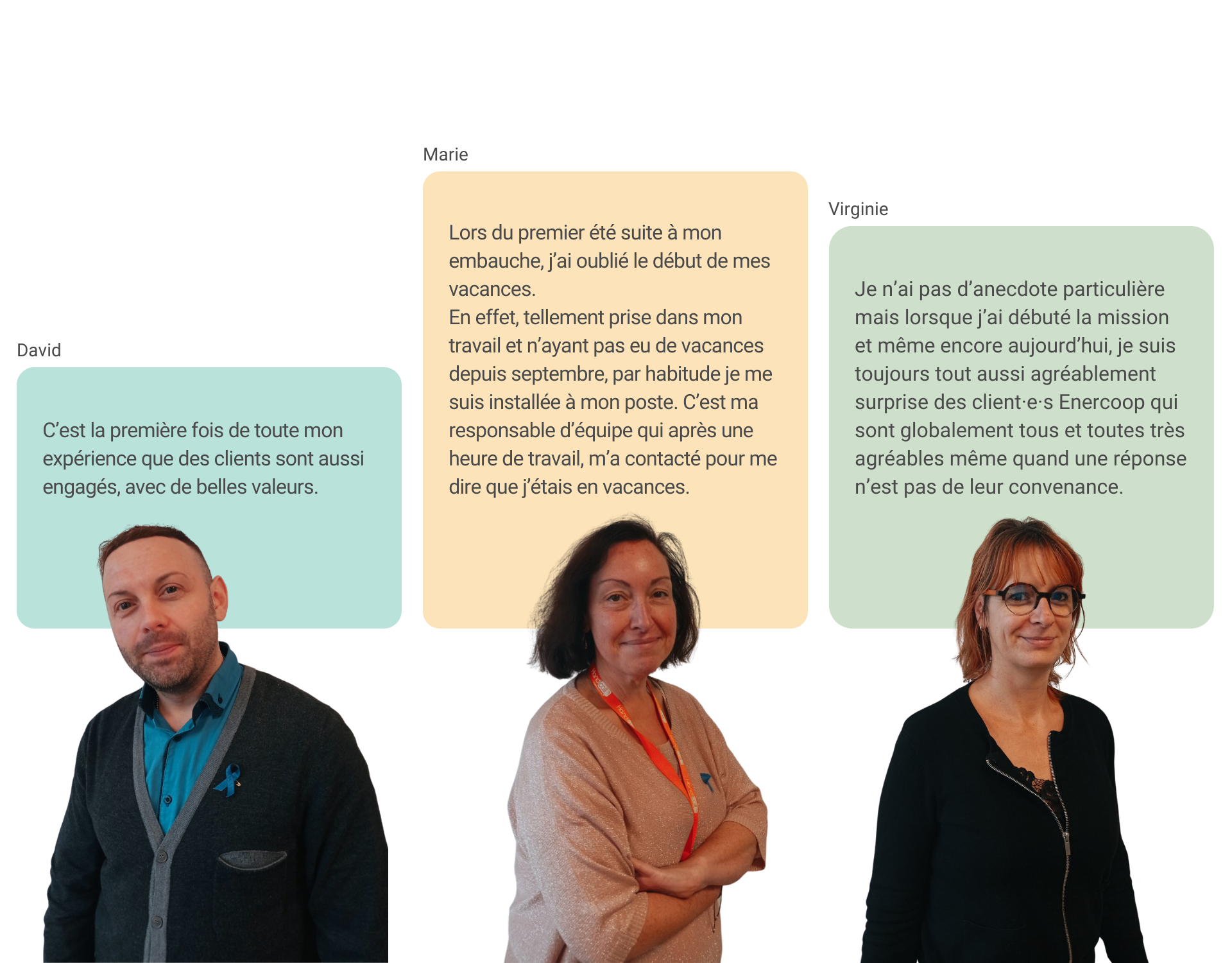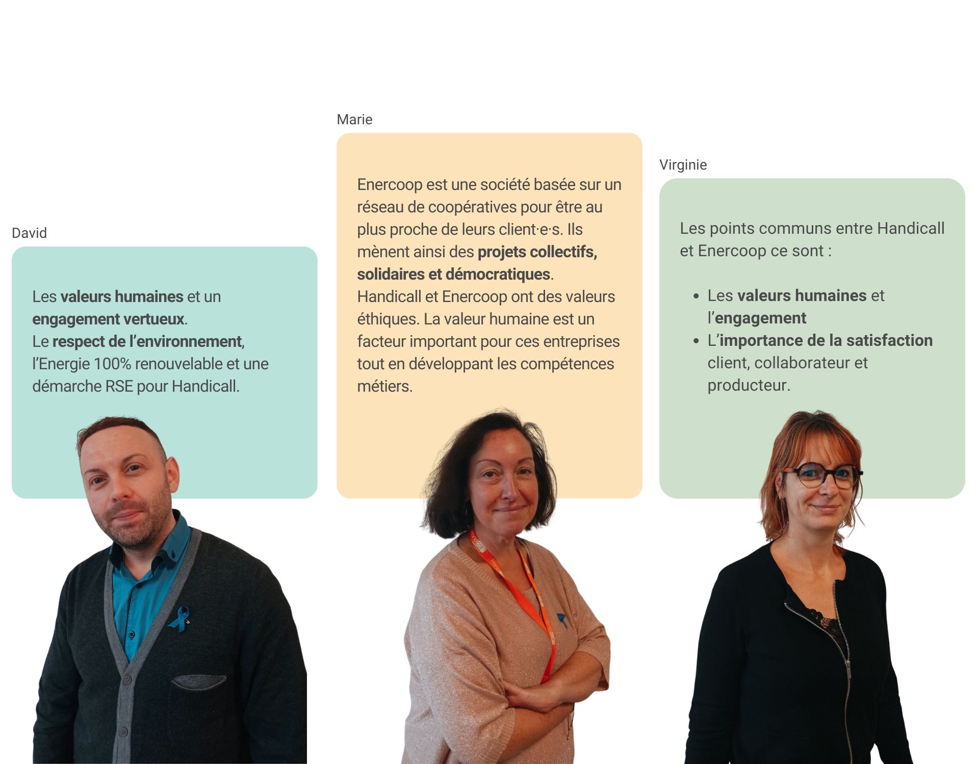 Nous avons soufflé, début octobre, les bougies d’un gâteau d’anniversaire bien spécial : celui de 3 ans de collaboration entre la relation client·e·s Enercoop et Handicall. Premier niveau de la relation client·e·s, ils travaillent main dans la main avec nos équipes pour faire la satisfaction de nos client·e·s. Alors, qui sont-ils ? Découvrez toutes les réponses à travers l’interview de trois salarié·e·s de Handicall, Marie, Virginie et David.