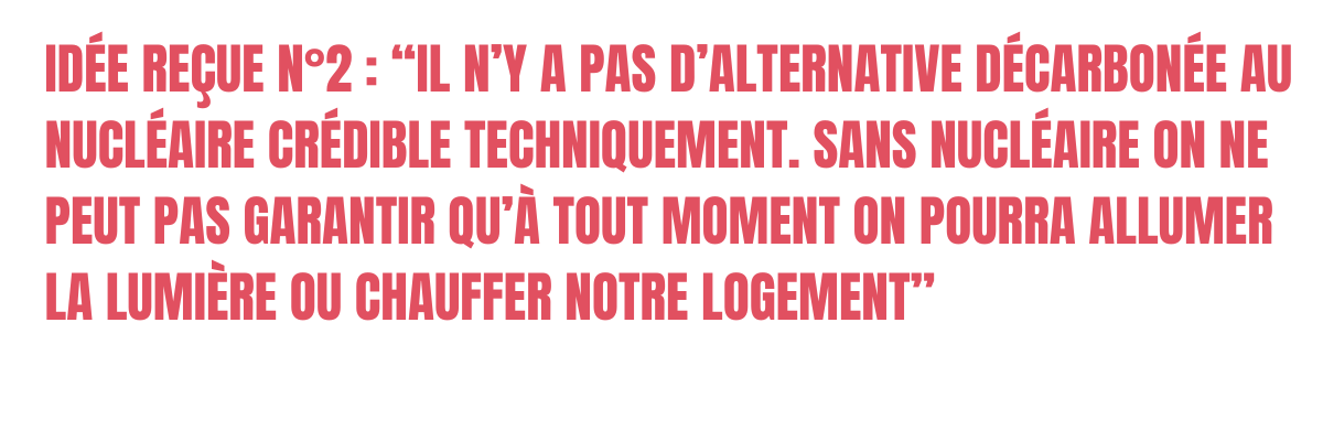 Pour atteindre la neutralité carbone d'ici la moitié du siècle, il est nécessaire de conduire une transition énergétique qui comporte de nombreux défis sur le plan technologique et sociétal. Les rapports prospectifs réalisés par négaWatt, RTE (Réseau de Transport d’Electricité) et l’Ademe (Agence de la transition écologique) en 2021 et 2022 ont montré qu’il était possible de satisfaire nos besoins globaux en énergie, et ce, à chaque instant, sans relancer un programme nucléaire. Ces besoins devront être nécessairement réduits par un effort de sobriété qui passe par des changements comportementaux, afin de sortir des énergies fossiles, atteindre nos objectifs climatiques et réduire la demande de production d’énergie. Il faut également agir au niveau de l’efficacité énergétique et de l’électrification de nos usages. Qu’importe l’option choisie entre relance ou non du nucléaire, il faudra massivement développer les énergies renouvelables d’ici à 2050. Pour obtenir un mix électrique composé à 100 % d’énergies renouvelables, il est nécessaire de miser sur toutes les énergies renouvelables, qui par leurs caractéristiques propres sont complémentaires, et sur différents leviers de flexibilité (effacement de la consommation, moyens de stockage, développement des STEP, nouveau thermique décarboné et développement des interconnexions) pour gérer la variabilité de leur production et permettre de produire suffisamment d’énergie. Précisions que cela requiert des investissements et efforts de Recherche & Développement massifs - et atteignables - dans des solutions de flexibilité. Pour ne pas subir des arrêts brutaux inattendus, la fermeture des centrales nucléaires historiques doit être planifiée et étalée jusqu'à 2045-2050. Dès lors, il sera possible de garantir qu’à tout moment nous pourrons nous chauffer et nous éclairer. Enfin, l’idée d’indépendance énergétique est un mythe plus qu’une réalité et le nucléaire n’est certainement pas une énergie 100 % française, déliée de toute dépendance envers l’étranger. Si la France produit assez d’électricité, principalement d’origine nucléaire, ce n’est qu’une petite partie de l’énergie consommée au total, qui est majoritairement d’origine fossile. De plus, l’uranium naturel nécessaire pour produire de l’énergie nucléaire est importé à 100 % et sa filière d’extraction et de transport dépend en grande partie du géant Russe Rosatom, proche du Kremlin, ce qui questionne d’autant plus dans le contexte de guerre en Ukraine et laisse peser un doute raisonnable sur notre sécurité d’approvisionnement.