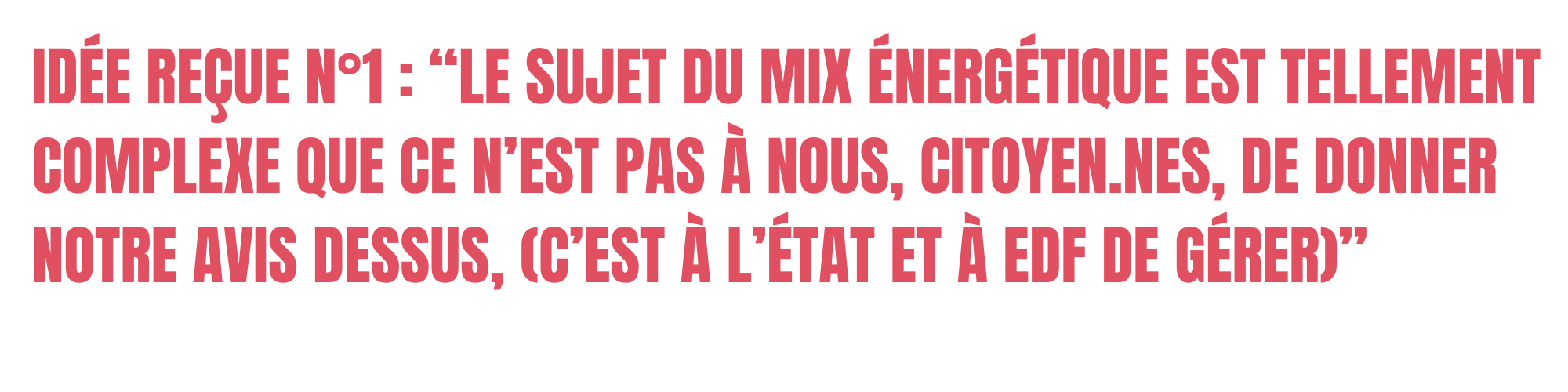 Parce que l'énergie est un bien commun et que les décisions prises impacteront nos sociétés pendant plusieurs générations, le choix du mix énergétique de demain ne peut être laissé aux seuls scientifiques et experts. Nous souhaitons que soit mise en place une vraie concertation sur le sujet pour bâtir collectivement un avenir désirable.