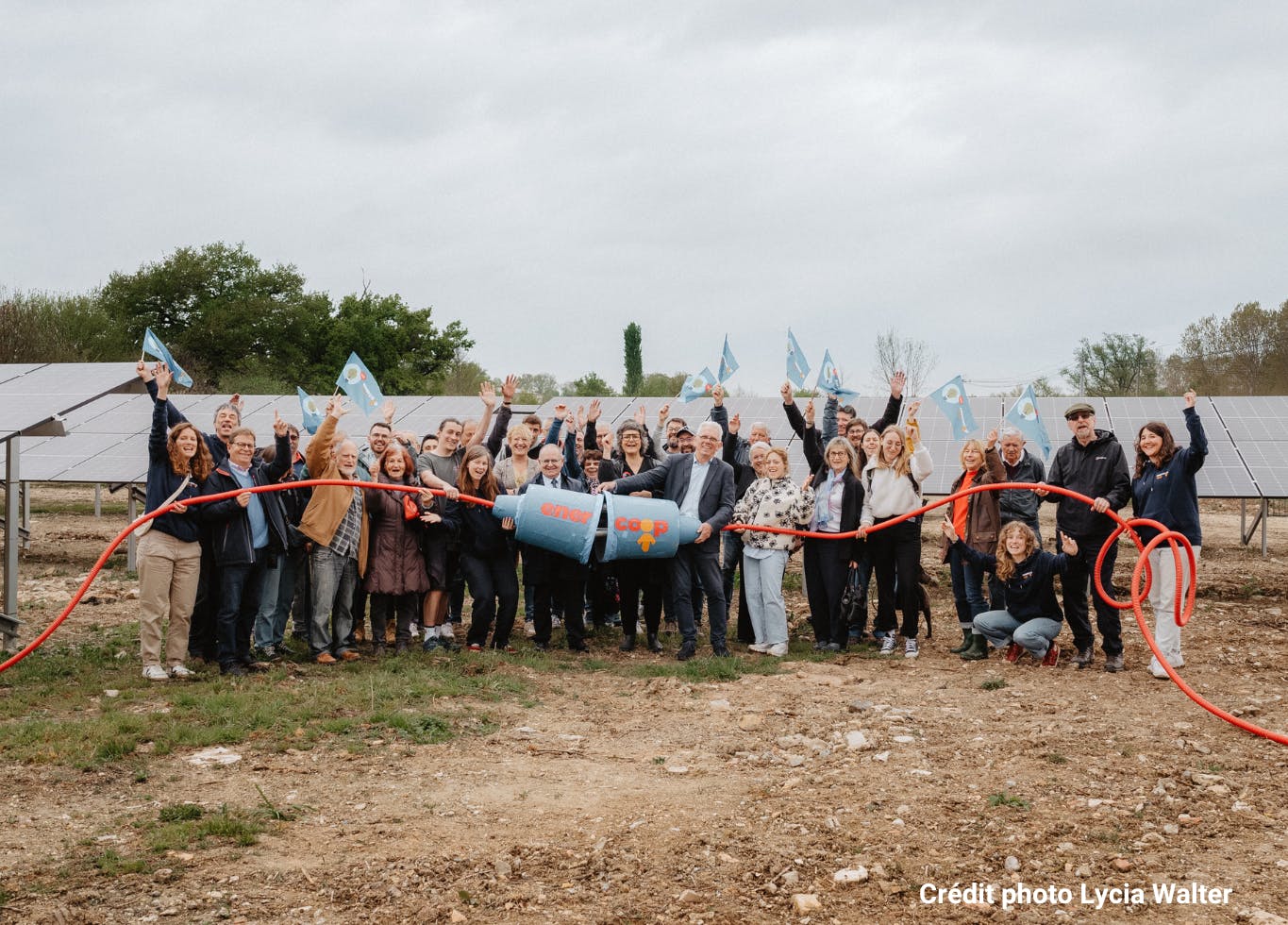 Une trentaine de personnes, sociétaires, habitants et habitantes, élu.es de la commune, de la communauté de communes ou du Département ont participé à la célébration qui a eu lieu samedi 12 avril pour la mise en service du parc solaire de la Douyne à Castillonnès (47).