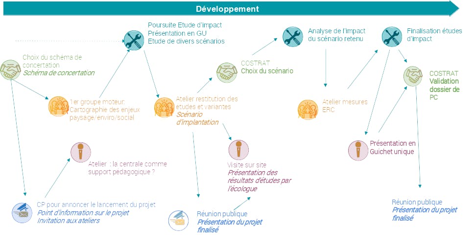 Il n’y a pas de calendrier type : chaque territoire est différent, chaque projet aussi : on adapte la concertation à la taille du projet et aux spécificités locales.