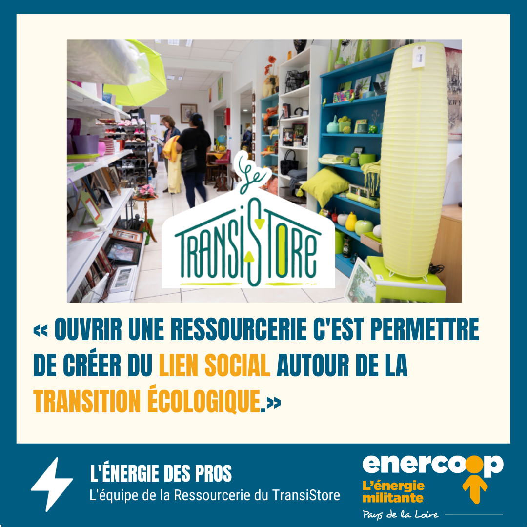 Pour ces locaux de 1 000m2, la question ne s'est pas posée très longtemps pour savoir quel fournisseur d’électricité retenir. Déjà cliente d'Enercoop pour son habitation personnelle, sa directrice Gaëlle Mention s'est donc naturellement tournée vers Enercoop et nous en sommes ravis. Le TransiStore à choisi ses 55 partenaires avec soin, il fait appel à des acteurs locaux afin de rester dans une forte dynamique territoriale : la boutique propose de payer avec la monnaie locale Moneko et elle collabore avec la SCOP imprimerie Parenthèses (pour des impressions respectueuses de l'environnement).