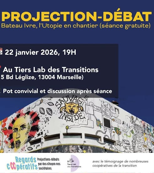 Enercoop Paca s’associe au LICA – Tiers-Lab des Transitions à Marseille pour la projection du film Bateau ivre, l’Utopie en chantier, le 22 janvier 2026 à 19h, en partenariat avec la coopérative Tënk.