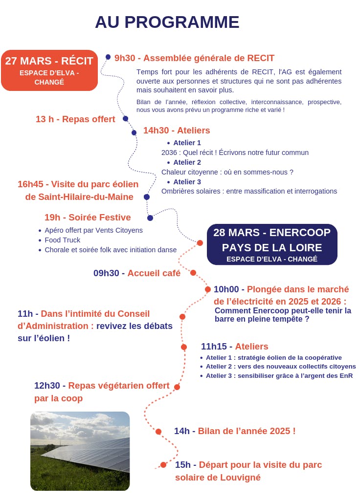 La journée des sociétaires est ouverte à toutes et tous. La participation est gratuite. Vous pouvez également vous inscrire à la journée organisée la veille le 27 mars par Récit, le réseau des énergies citoyenes des Pays de la Loire. Pour faciliter la tenue de ces deux jours, nous vous demandons de bien vouloir vous inscrire en remplissant ce formulaire.