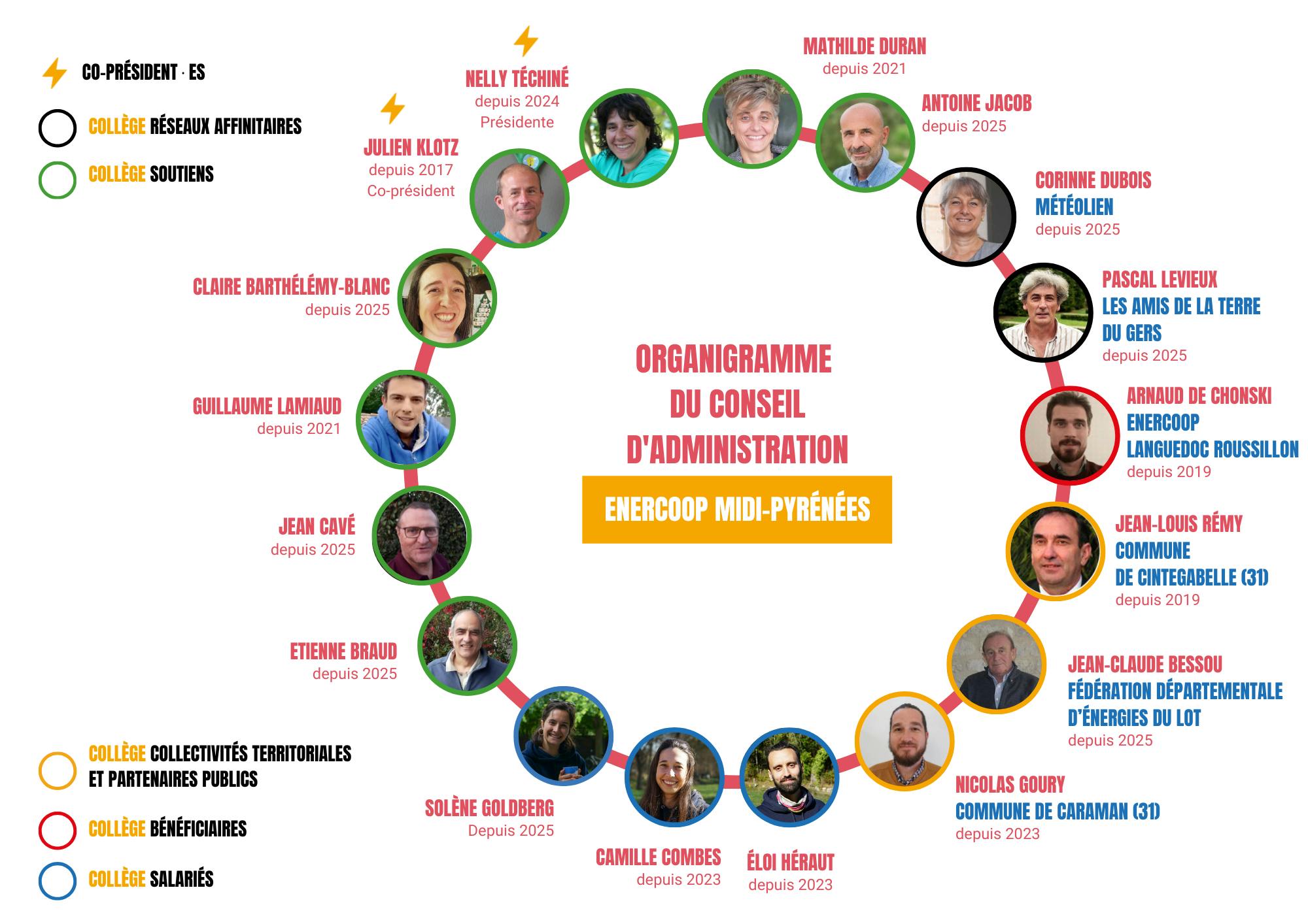 Enercoop Midi-Pyrénées, c’est avant tout un projet collectif et une histoire humaine ! Au quotidien, notre Société Coopérative d’Intérêt Collectif (SCIC) s'appuie sur les compétences de ses sociétaires : salarié·es, membres du Conseil d’Administration et autres bénévoles. Leur implication est un soutien précieux pour l’équipe salariée et une richesse pour la coopérative.