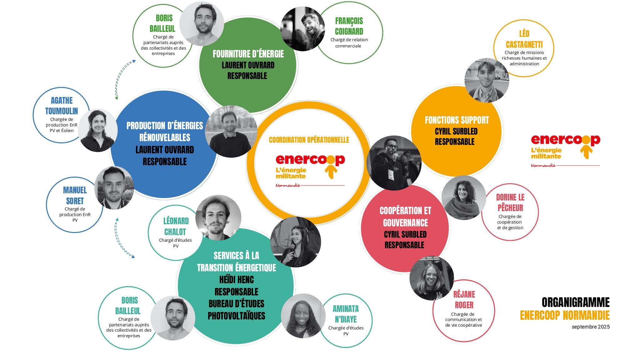 De la production locale d’énergie à la gouvernance coopérative, du pilotage stratégique aux ancrages territoriaux, les membres de notre Conseil d’administration jouent un rôle essentiel pour faire avancer Enercoop Normandie au quotidien.
