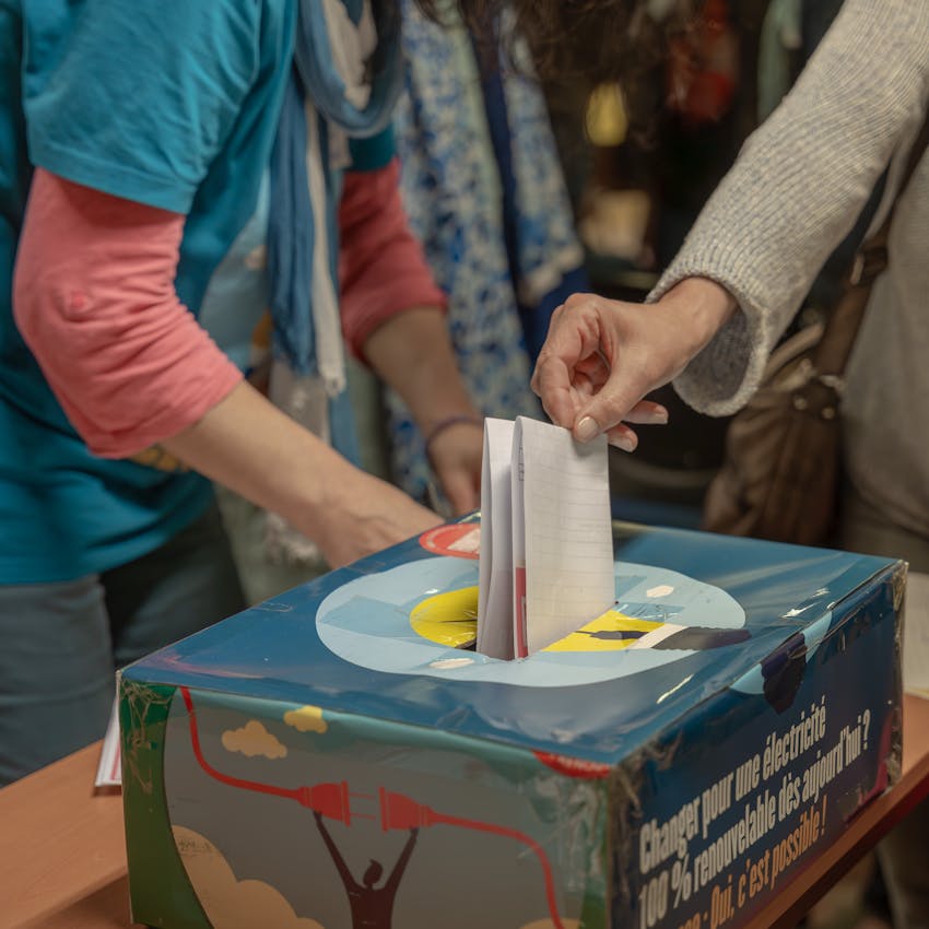 En tant que sociétaire d'Enercoop Normandie, vous avez l'opportunité de vous engager dans le développement de la coopérative, quel que soit votre niveau d'expérience ou votre disponibilité. Vous pouvez, par exemple, tenir un stand lors d'événements avec le soutien de nos salariés et sociétaires expérimentés, qui vous fourniront toutes les ressources nécessaires.